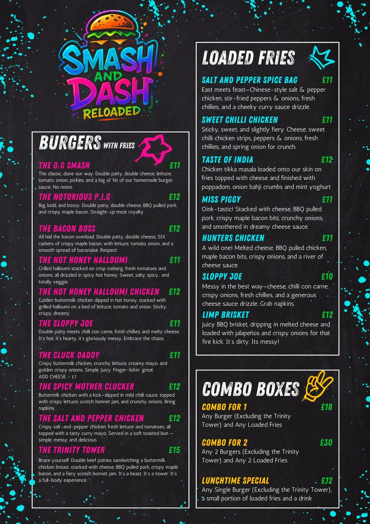 Smash & Dash are serving up juicy smash burgers, loaded fries, and crave-worthy sides. Fast, fresh, and full of flavour. Come hungry, leave happy!